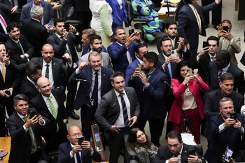 Бразилският парламент беше обзет от хаос във вторник, след като консервативните законодатели продължиха да настояват за закон, който би намалил присъдата на бившия президент Жаир Болсонаро, съобщава Би Би Си.