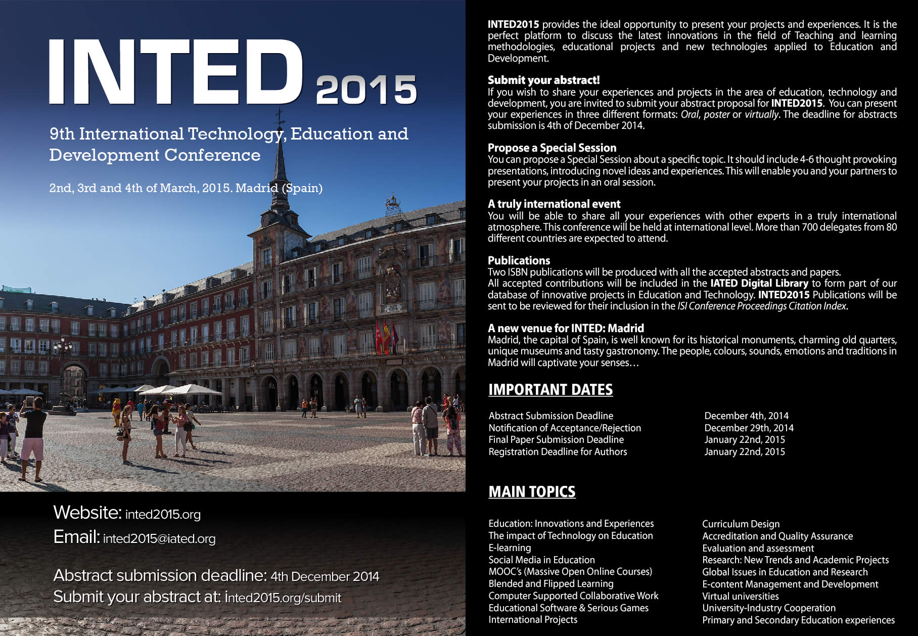 Покана за конференция INTED2015