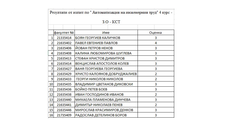 Резултати от изпит по АИТ на 23.10.19 г. - 4 курс З.О