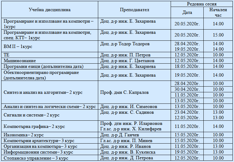 Изпитна сесия за студенти от I, II и III курс, задочна форма на обучение - by Simona - 23-04-2020, 11:48 AM