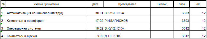 Зимна изпитна сесия на спец. КСТ, ОКС "бакалавър" - 4 курс, редовно обучение