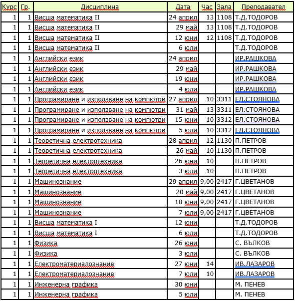 Лятна изпитна сесия на спец. КСТ, ОКС "бакалавър" - 1 курс, задочно обучение