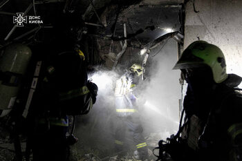 Смъртта на двама е потвърдена от властите в украинската столица Киев, където в понеделник сутрин продължава руска въздушна атака.